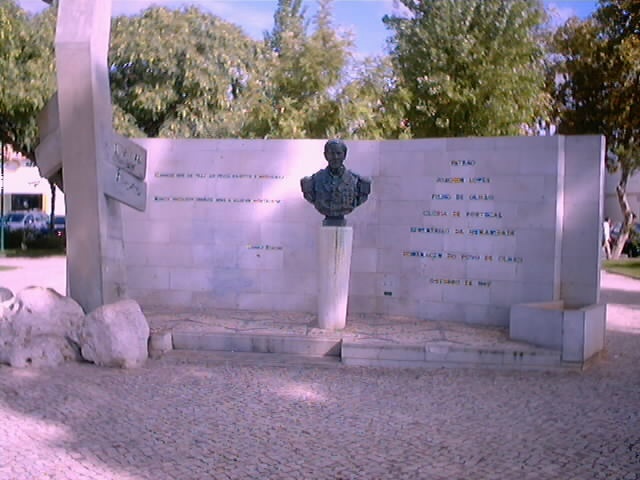 1957 (frente à Ria Formosa), foi colocado um seu busto em 1976 com alguns versos de Tomaz Ribeiro, e que sempre me impressionaram: "Ganhou que as traz ao peito hábitos e medalhas |